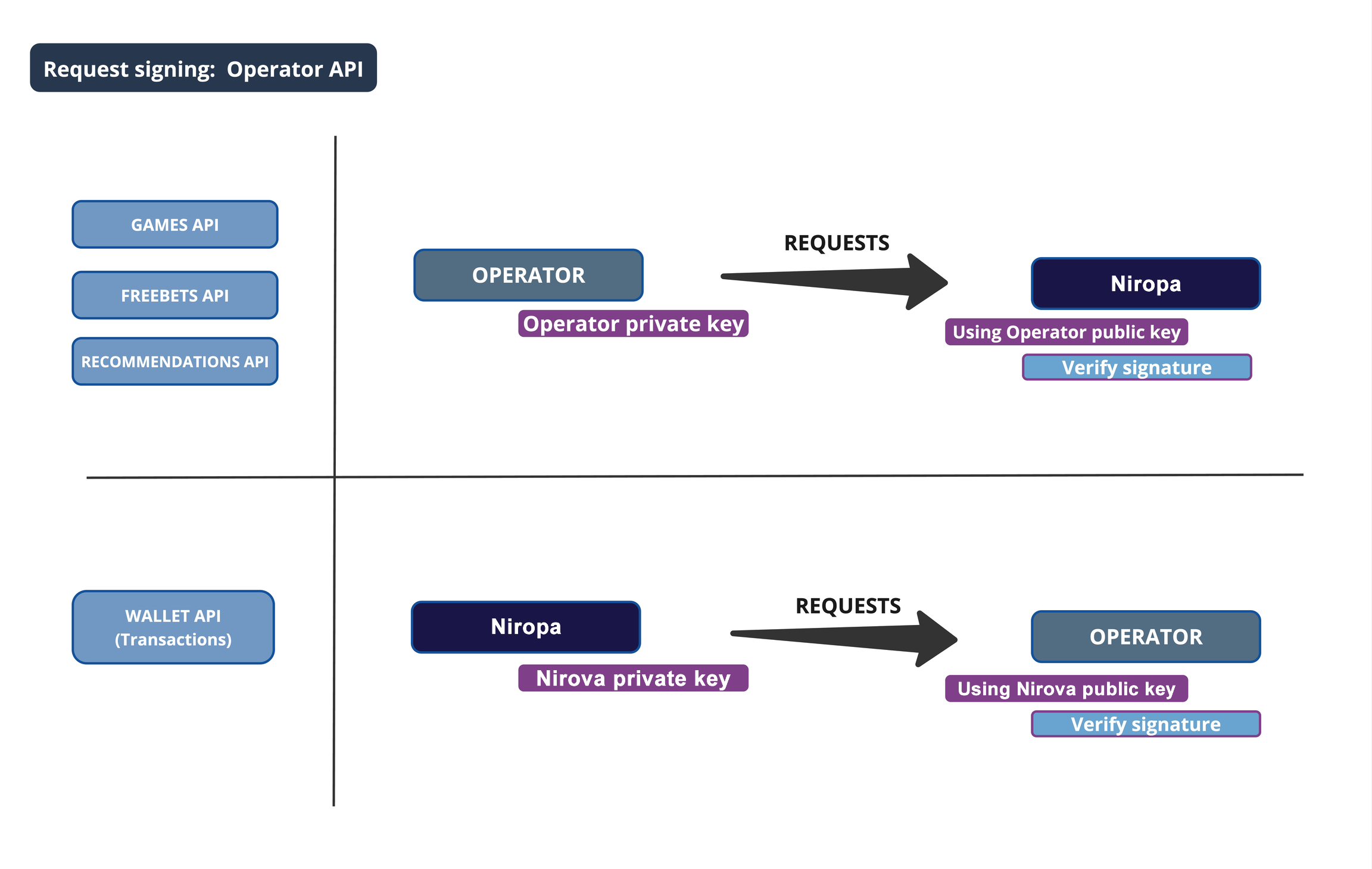 • Niropa verifies all Games API requests using the public key provided by the Operator.